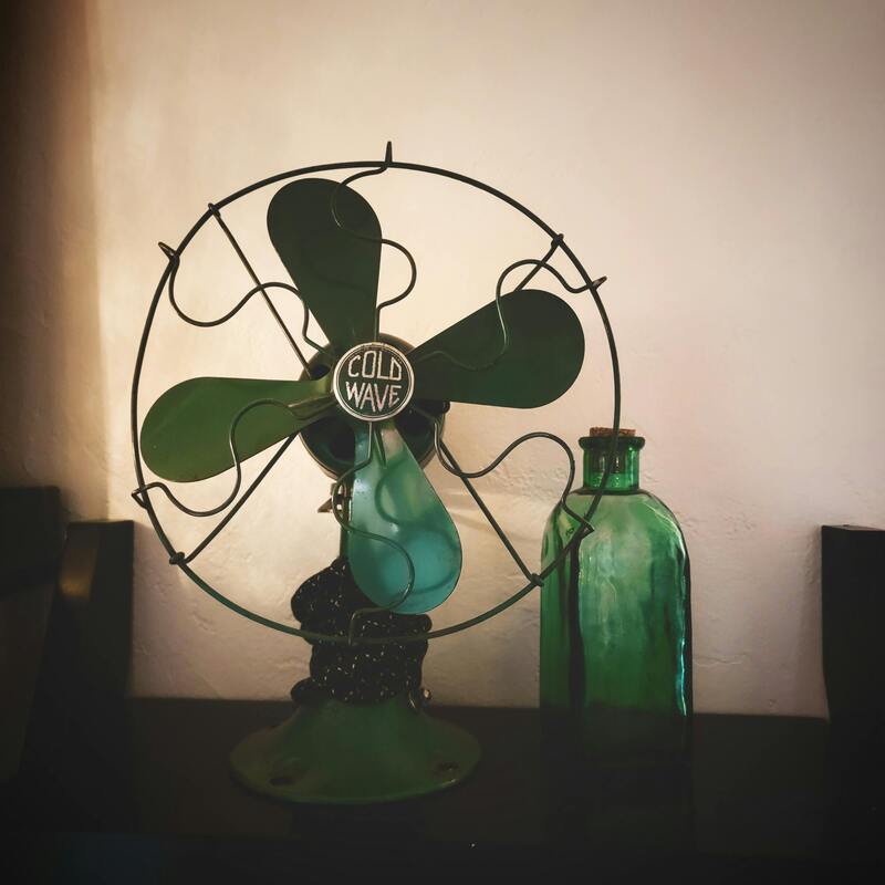 A table fan is just a small electric fan you put on a table or desk to blow air around the room. It helps cool things down and makes you more comfy.